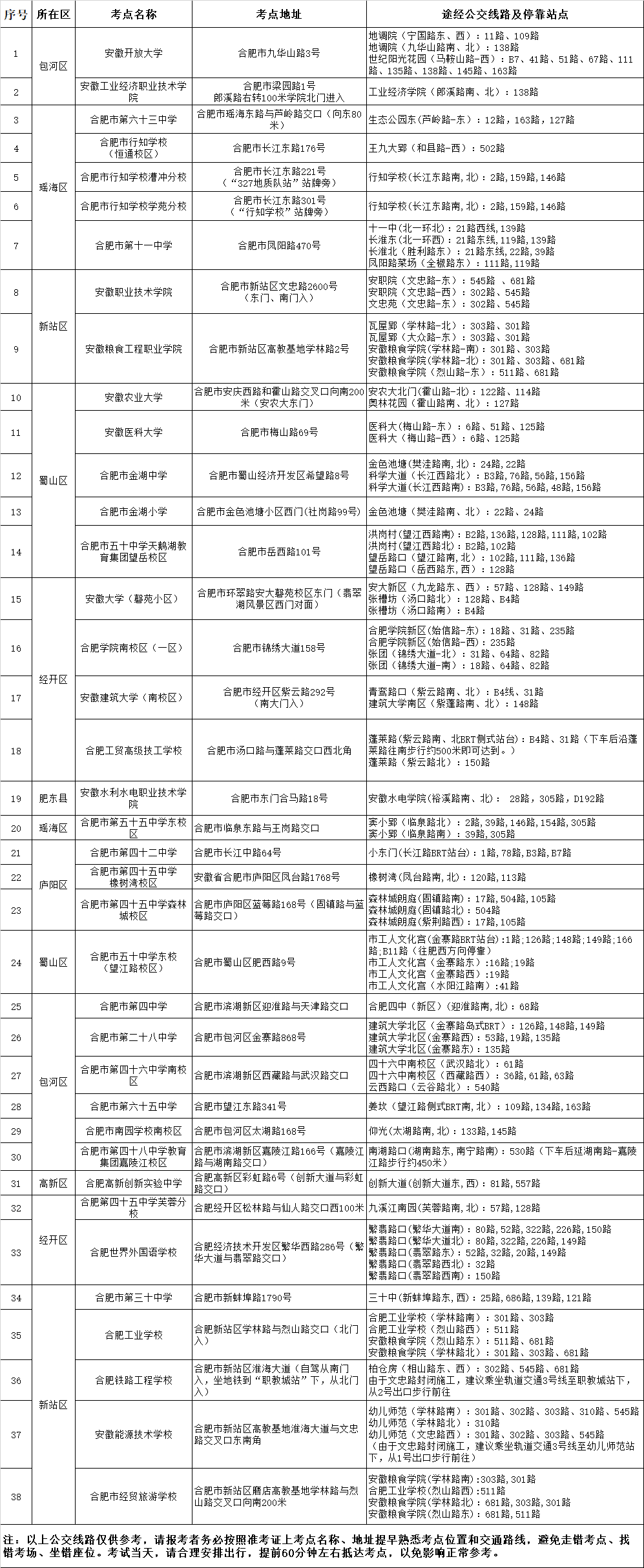 2022年國考安徽考區(qū)具體考點(diǎn)