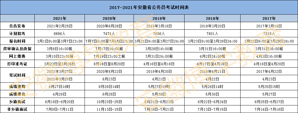 2017-2021年安徽省公務(wù)員考試時(shí)間表
