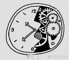 1、漫畫題,一個鐘表左邊有時分針,右邊破損,顯露的是齒輪。對此,你怎么看?